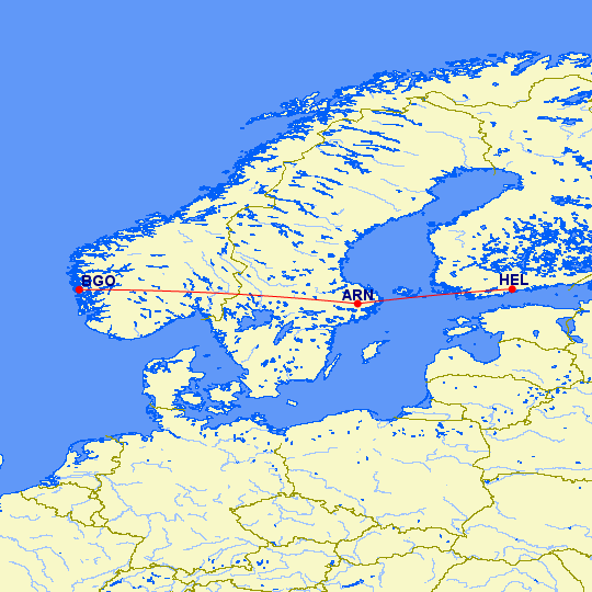 We flew to Helsinki with a stop in Stockholm. Total time for the air trip was about 3 hours. Helsinki is an hour earlier than Norway; time change!